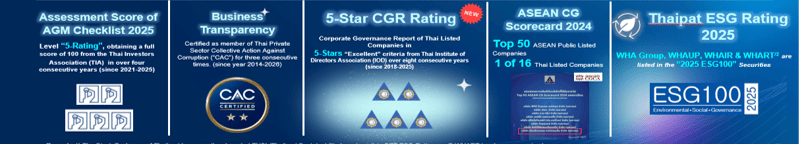 WHA Corporation Public Company Limited realizes the significance of sustainable business operations and thus adhere to and comply with the principles of good corporate governance, in the hope of ensuring its business prosperity and stability in the long run, giving rise to efficiency and effectiveness, promoting transparency, so as to earn trust and generate benefits to all stakeholders concerned.