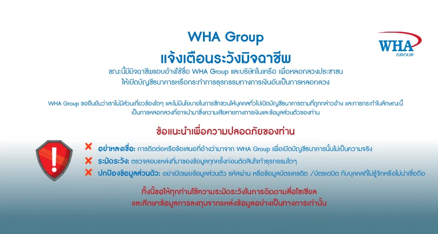 We have a clear vision of where we want to go and what we want to be recognized as – leaders in our sector with the highest safety standards, reliability and efficiency to deliver top-notch performance, respect for the environment and engagement with surrounding communities. With the support of our customers, partners, stakeholders and employees, the WHA Group is committed to building a brighter future for us all.