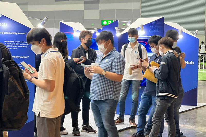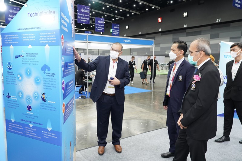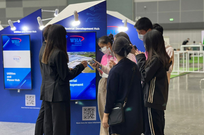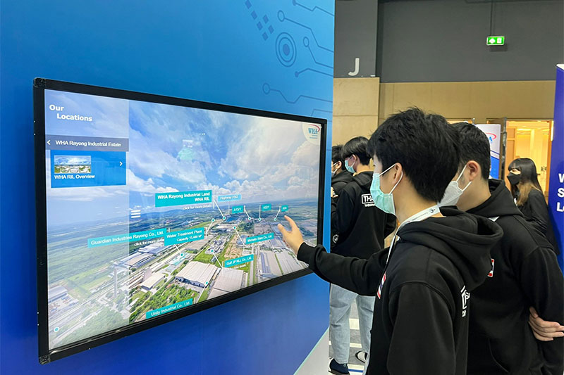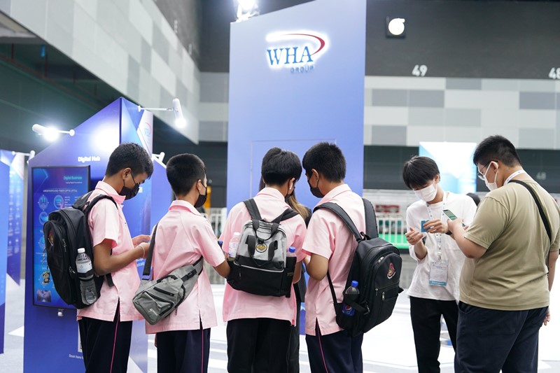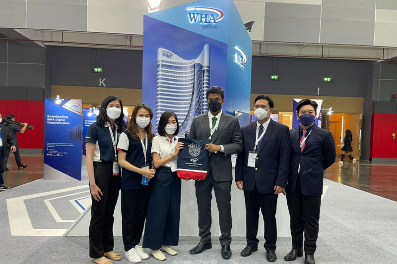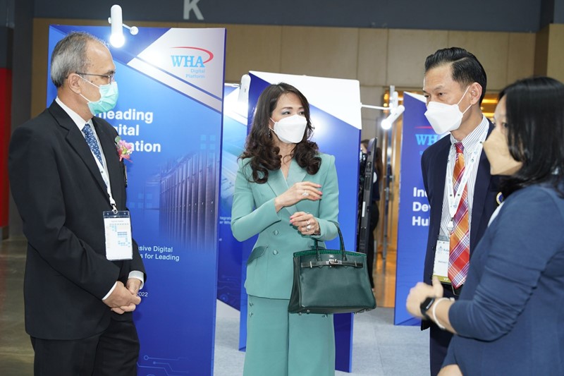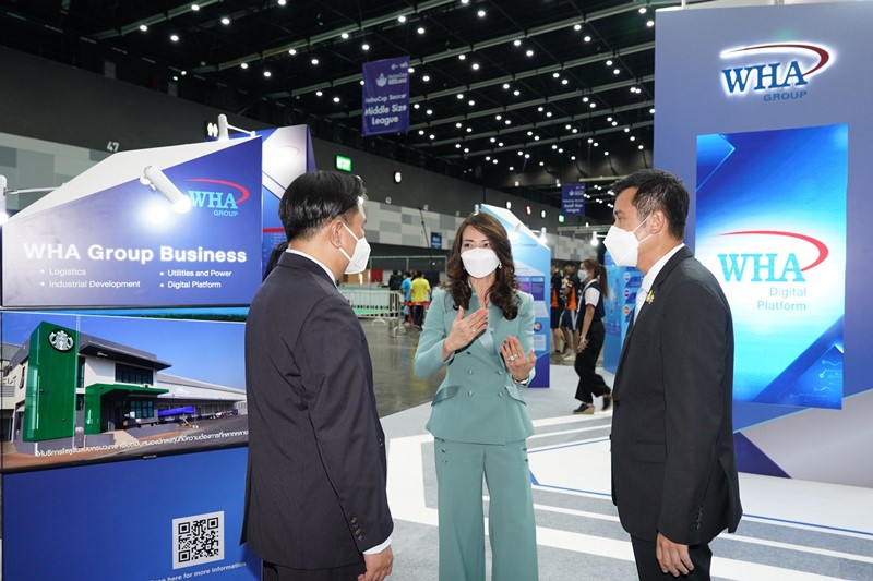 Ms. Jareeporn Jarukornsakul (right), Chairman and Group CEO of WHA Corporation PCL (WHA Group) recently welcomed Mr. Chaiwut Thanakamanusorn (center), Minister of Digital Economy and Society, Assoc. Prof. Dr. Jackrit Suthakorn (2nd right), Dean, Faculty of Engineering, Mahidol University, and General Co-Chair of RoboCup 2022, as well as other executives of Mahidol University during a visit to WHA Group's exhibition booth at the opening ceremony of the 25th World RoboCup 2022 competition. As a main sponsor of the event, WHA has reiterated its commitment to promote research for Robotics and Artificial Intelligence and to support skill development for the next generation of IT talent to continue creating innovative solutions to help increase productivity and safety in all sectors.