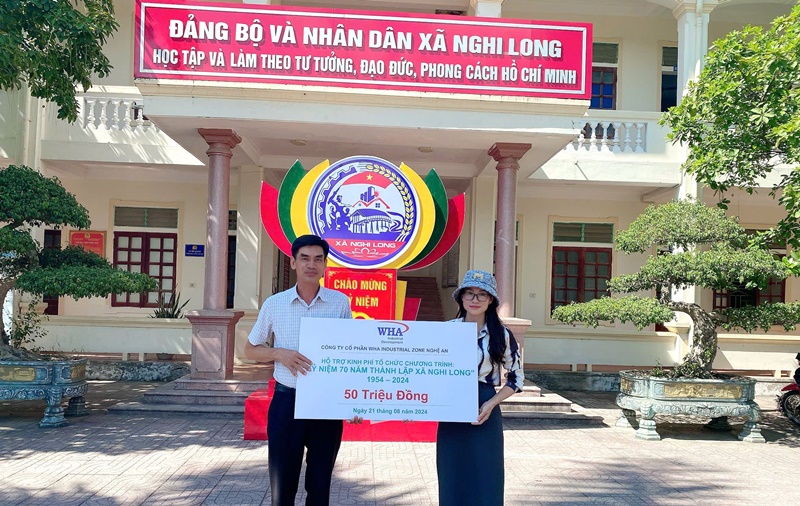 WHA Industrial Zone Nghe An continues to demonstrate its commitment to the local community by supporting the 70th anniversary celebrations of three communes: Nghi Long, Nghi Hung, and Nghi Thuan. As part of its ongoing Corporate Social Responsibility (CSR) initiatives, WHA has contributed VND 50 million to each commune to help organize the celebration activities, marking a significant milestone in their history.