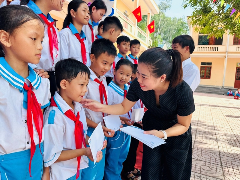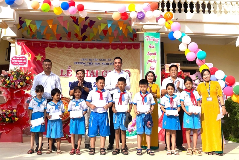 The WHA teams joined in school opening ceremonies across Nghi Thuan, Nghi Hung, and Nghi Đong communes, where they personally delivered scholarships and shared motivational messages with the students, encouraging them to strive for excellence regardless of their circumstances.