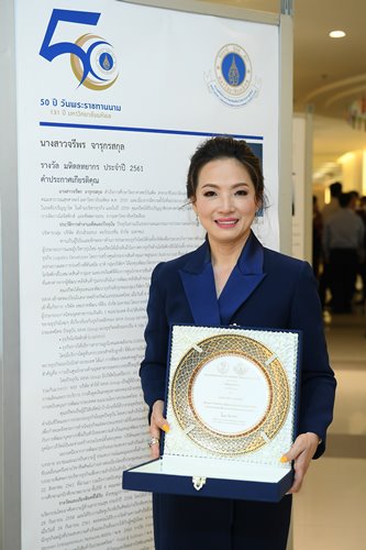 Ms. Jareeporn Jarukornsakul, Chairman and Group CEO of WHA Corporation PCL, Thailand’s leader in fully-integrated Logistics and Industrial Estates, Utilities & Power and Digital solutions, recently received the 2018 Mahidol Thayakorn Awards for Outstanding Alumni. The distinction was presented to her in recognition of her role in developing Thailand’s industrial sector, outstanding leadership and contribution to society. The ceremony was part of the 50th anniversary of the Royal Bestowal of HRH Prince Mahidol’s name and the 131st anniversary of its existence.