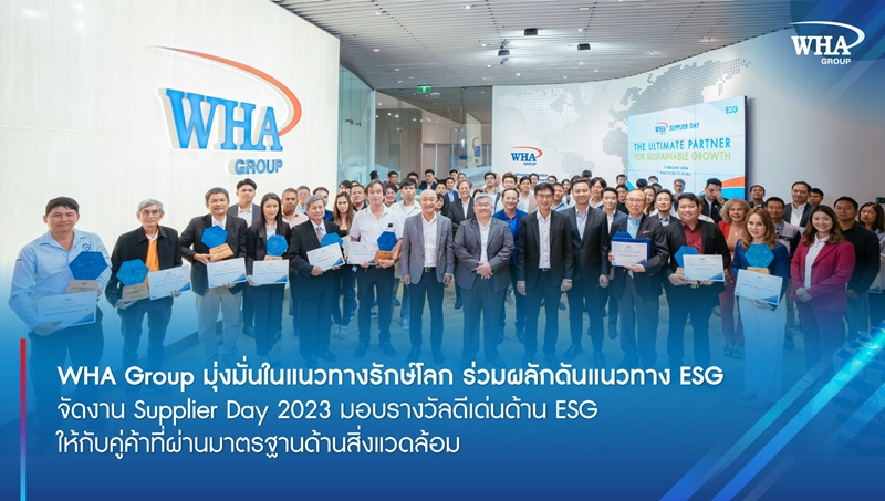 WHA Group มุ่งมั่นในแนวทางรักษ์โลก ร่วมผลักดันแนวทาง ESG จัดงาน Supplier Day 2024 มอบรางวัลดีเด่นด้าน ESG ให้กับคู่ค้าที่ผ่านมาตรฐานด้านสิ่งแวดล้อม