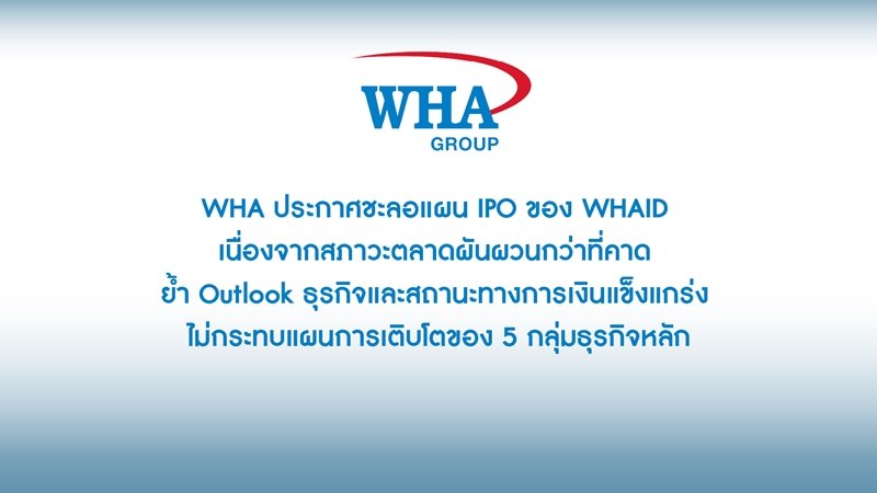 WHA ประกาศชะลอแผน IPO ของ WHAID เนื่องจากสภาวะตลาดผันผวนกว่าที่คาด ย้ำ Outlook ธุรกิจและ สถานะทางการเงินแข็งแกร่ง ไม่กระทบแผนการเติบโตของ 5 กลุ่มธุรกิจหลัก