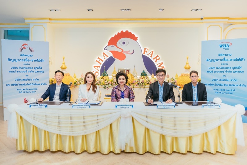 Bangkok – WHA Utilities & Power Plc (WHAUP) has signed an agreement to purchase solar energy with Saha Farm Company Limited and Golden Line Business Company Limited, a leading comprehensive chicken product manufacturer and distributor. This partnership aims to produce and distribute electricity from solar power from Solar Floating, Solar Farm, and Solar Rooftop formats across 14 projects, generating a total capacity of 46.36 megawatts. These solar projects, located outside WHA Group’s industrial estates in Lopburi and Phetchabun provinces, are expected to distribute the electricity to the grid within the first two quarters of 2025.