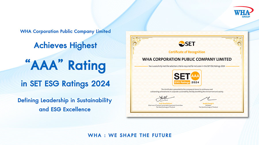 WHA Achieves Highest "AAA" Rating in SET ESG Ratings 2024 Defining Leadership in Sustainability and ESG Excellence
