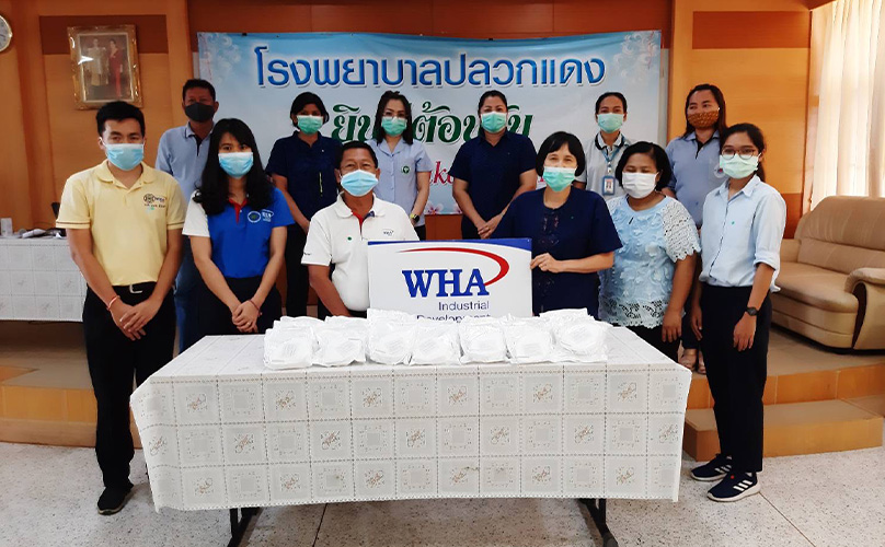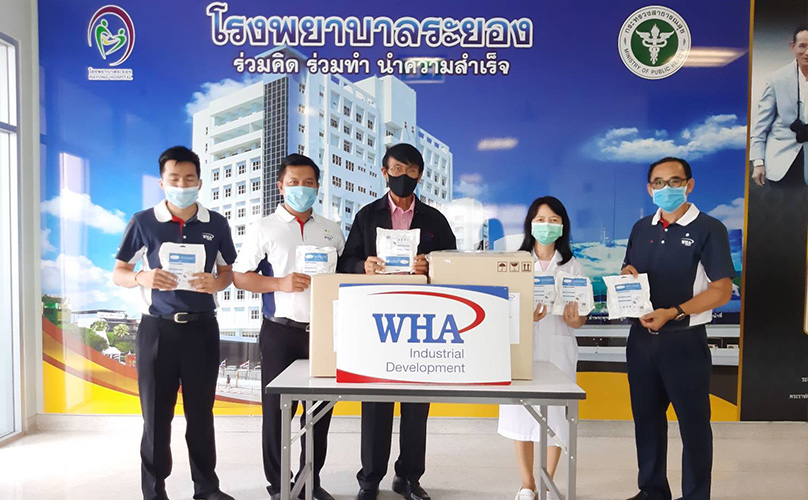WHA Group teams were also hard at work distributing KN-95 masks and hand sanitizers to Rayong's Pluakdaeng Hospital, the Pattaya Administrative Office, and other public institutions in the Eastern Economic Corridor. They also went to Rayong's Maenamkoo district to assist in the production of masks for monks and villagers.