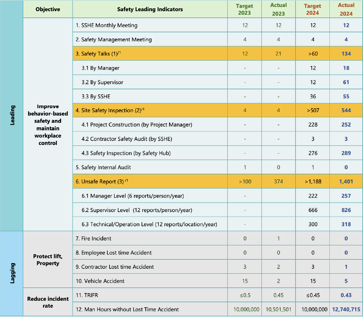 In addition, WHA Group set goals and performance assessments in safety operations on various issues. To be able to effectively manage occupational health and safety risks and achieve the ultimate goal of zero accidents across the organization.