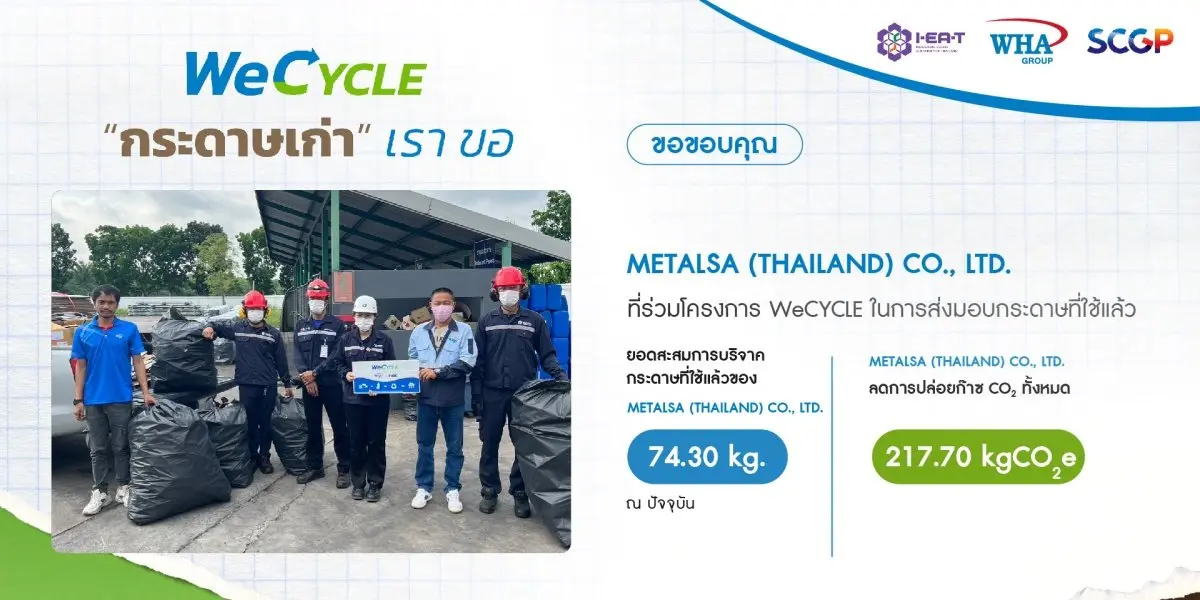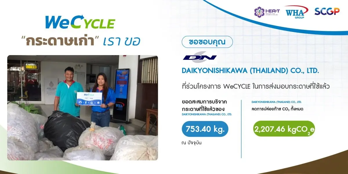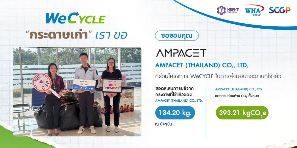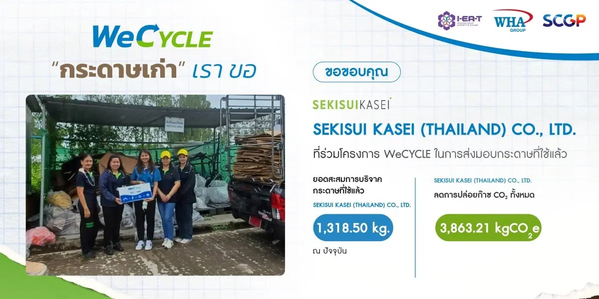 นำกระดาษใช้แล้ว มา Recycle นำกลับมาใช้ใหม่ตามหลัก Circular Economy โดยผลิตเป็นสื่อการเรียน การสอน ในโรงเรียนรอบๆ นิคมอุตสาหกรรมดับบลิวเอชเอ