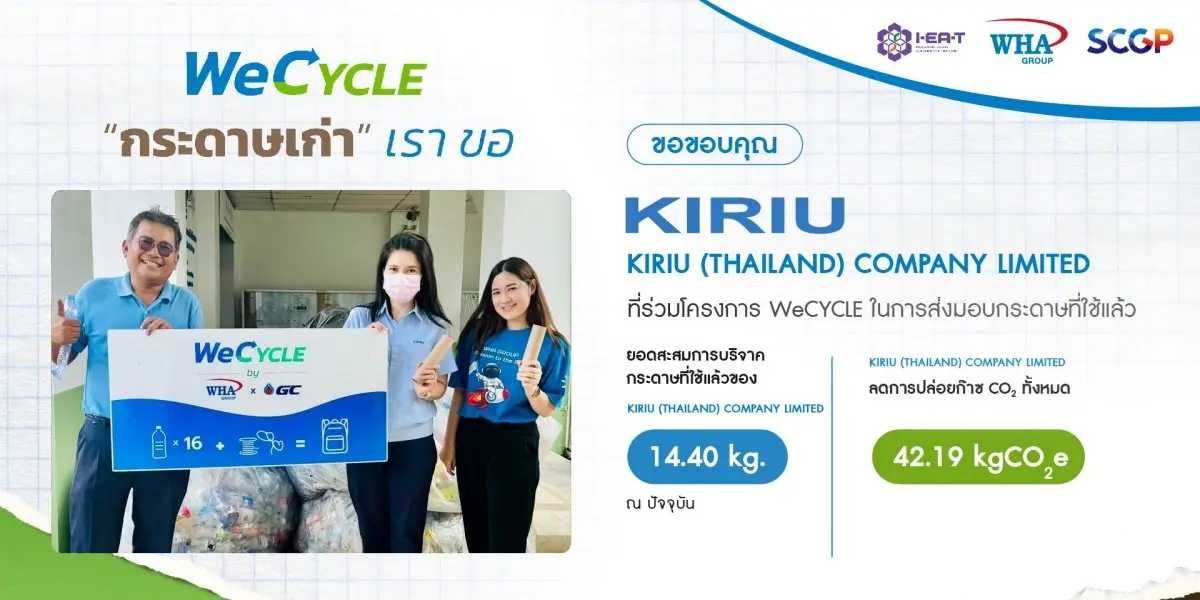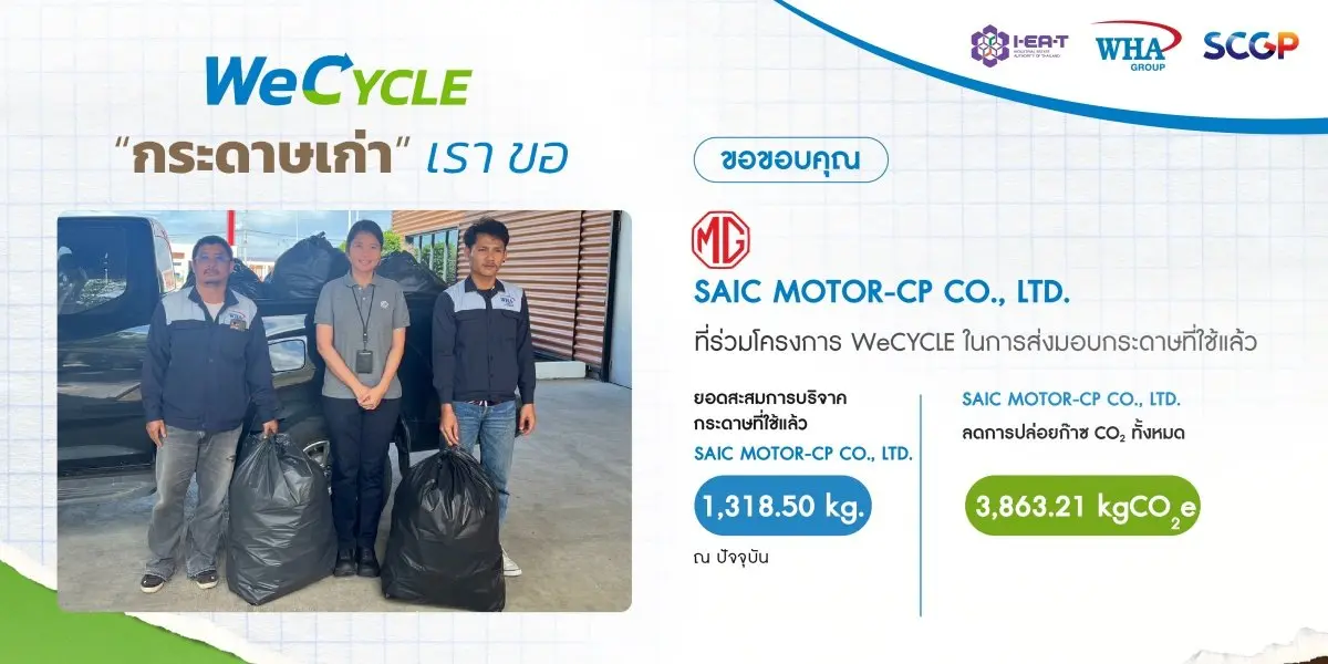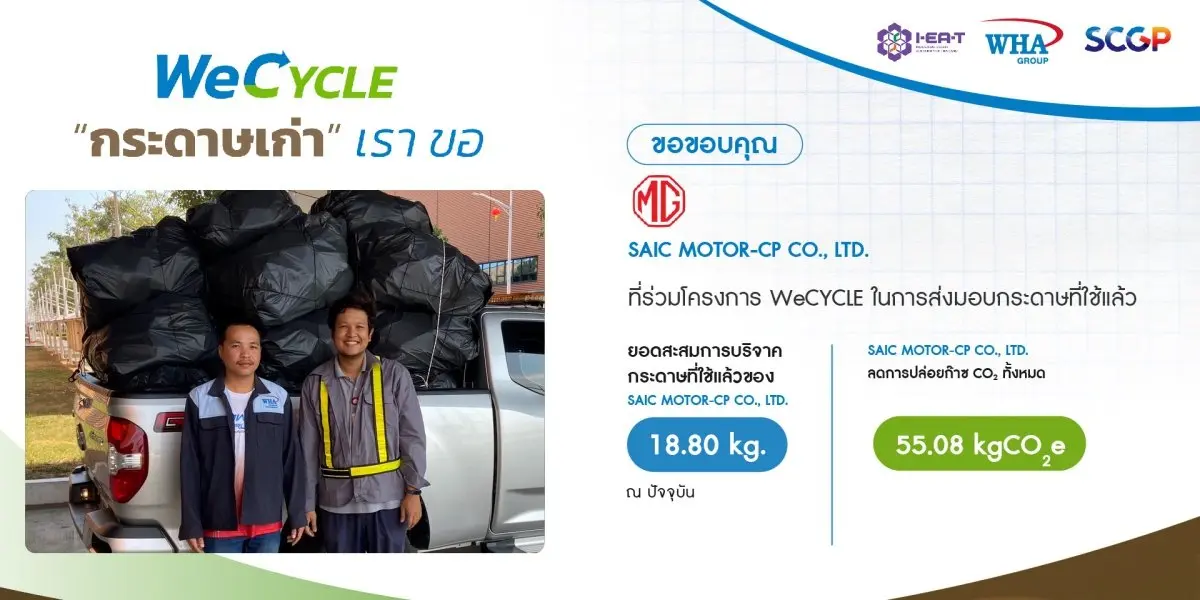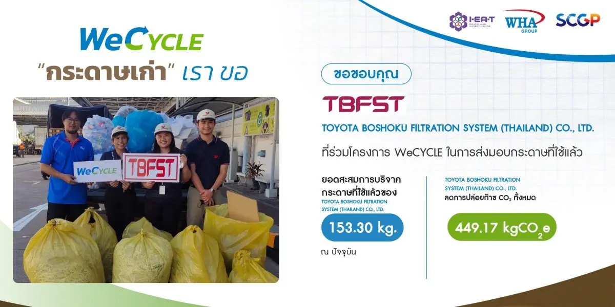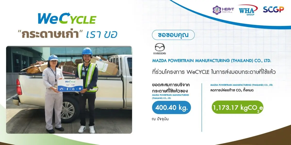 นำกระดาษใช้แล้ว มา Recycle นำกลับมาใช้ใหม่ตามหลัก Circular Economy โดยผลิตเป็นสื่อการเรียน การสอน ในโรงเรียนรอบๆ นิคมอุตสาหกรรมดับบลิวเอชเอ