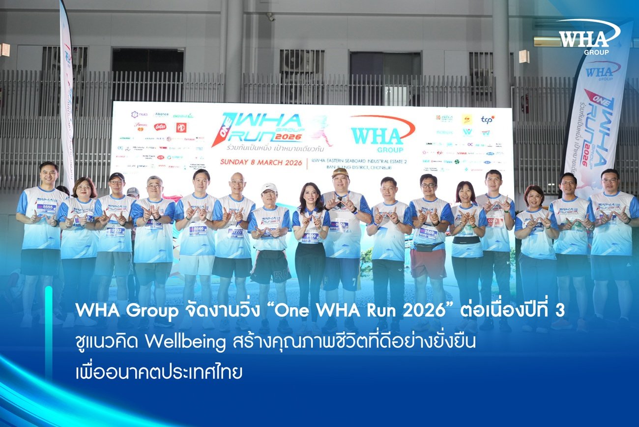 WHA Group จัดงานวิ่ง “One WHA Run 2026” ต่อเนื่องปีที่ 3 ชูแนวคิด Wellbeing สร้างคุณภาพชีวิตที่ดีอย่างยั่งยืนเพื่ออนาคตประเทศไทย