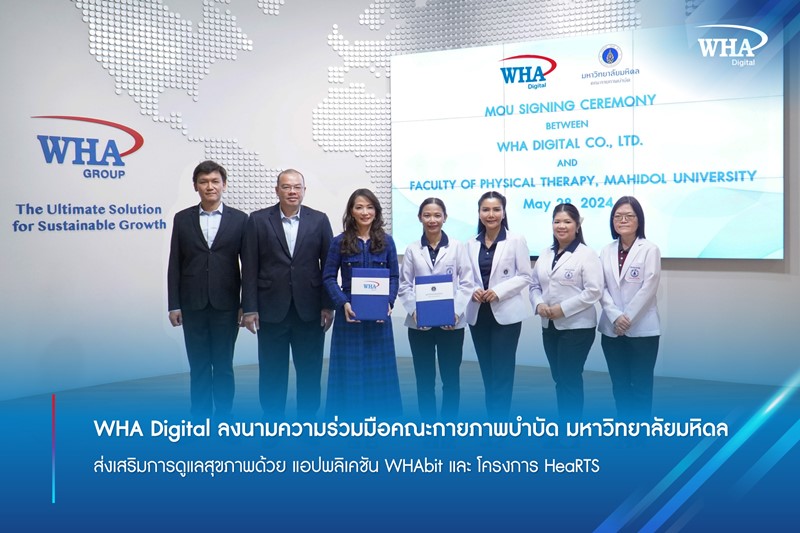 WHA Digital ลงนามความร่วมมือคณะกายภาพบำบัด มหาวิทยาลัยมหิดล ส่งเสริมการดูแลสุขภาพด้วย แอปพลิเคชัน WHAbit และ โครงการ HeaRTS