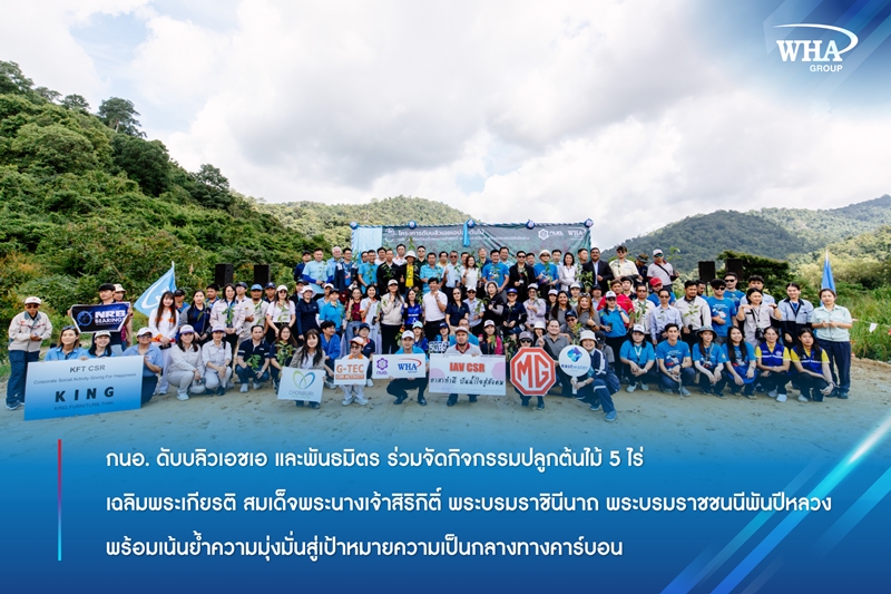 กนอ. ดับบลิวเอชเอ และพันธมิตร ร่วมจัดกิจกรรมปลูกต้นไม้ 5 ไร่ เฉลิมพระเกียรติ สมเด็จพระนางเจ้าสิริกิติ์ พระบรมราชินีนาถ พระบรมราชชนนีพันปีหลวง พร้อมเน้นย้ำความมุ่งมั่นสู่เป้าหมายความเป็นกลางทางคาร์บอน
