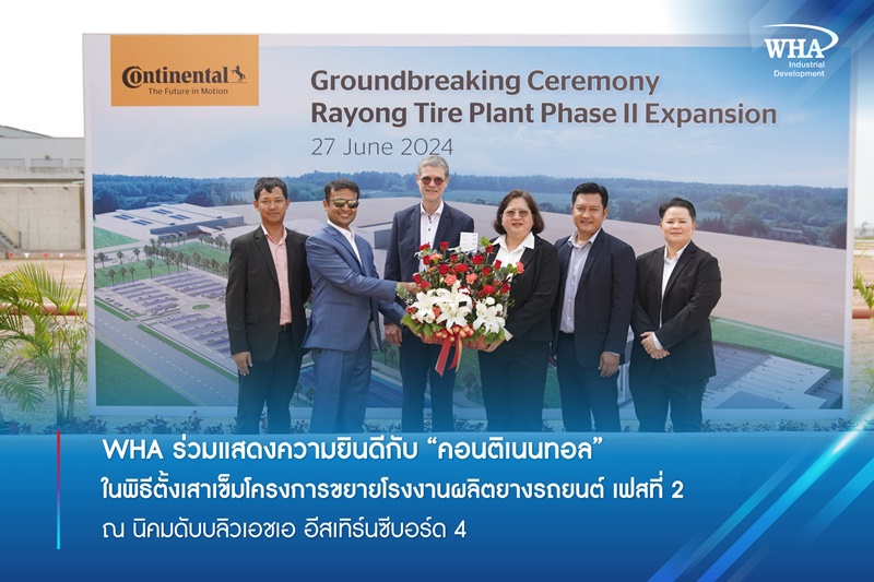 WHA ร่วมแสดงความยินดีกับ "คอนติเนนทอล" ในพิธีตั้งเสาเข็มโครงการขยายโรงงานผลิตยางรถยนต์ เฟสที่ 2 ณ นิคมดับบลิวเอชเอ อีสเทิร์นซีบอร์ด 4