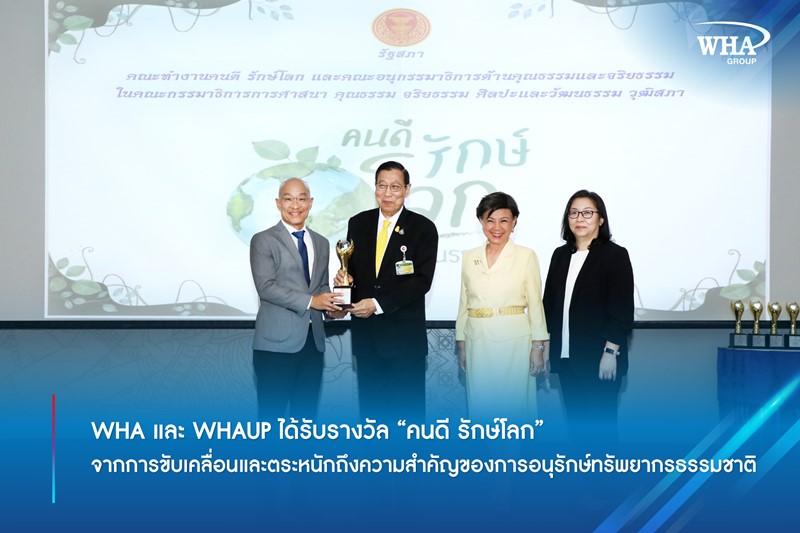 WHA และ WHAUP ได้รับรางวัล "คนดี รักษ์โลก" จากการขับเคลื่อนและตระหนักถึงความสำคัญของการอนุรักษ์ทรัพยากรธรรมชาติ