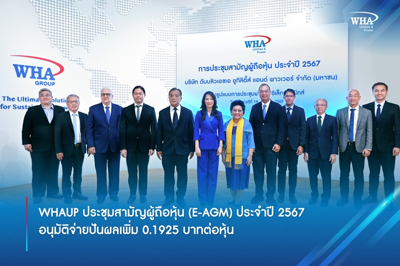 WHAUP ประชุมสามัญผู้ถือหุ้น (E-AGM) ประจำปี 2567 อนุมัติจ่ายปันผลเพิ่ม 0.1925 บาทต่อหุ้น