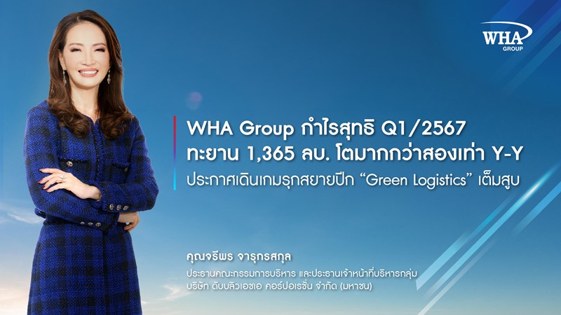 WHA Group กำไรสุทธิ Q1/2567 ทะยาน 1,365 ลบ. โตมากกว่าสองเท่า Y-Y ประกาศเดินเกมรุกสยายปีก "Green Logistics" เต็มสูบ