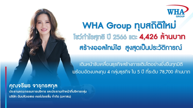 WHA Group ทุบสถิติใหม่ โชว์กำไรสุทธิ ปี 2566 แตะ 4,426 ลบ. สร้างออลไทม์ไฮสูงสุดเป็นประวัติการณ์ บอร์ดเคาะจ่ายปันผลรวมทั้งปี 0.1839 บาทต่อหุ้น จ่อ XD 9 พ.ค.นี้