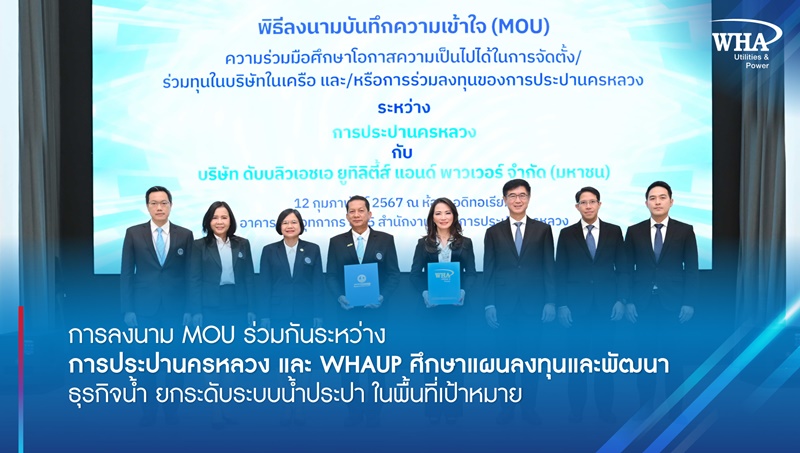 การลงนาม MOU ร่วมกันระหว่าง การประปานครหลวง และ WHAUP ศึกษาแผนลงทุนและพัฒนา ธุรกิจน้ำ ยกระดับระบบน้ำประปา ในพื้นที่เป้าหมาย