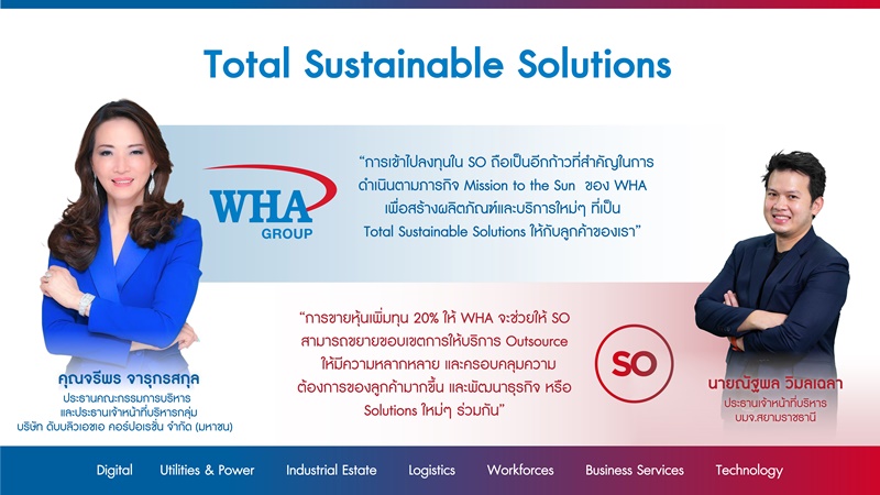 WHA ไฟเขียวลงทุน 20% ใน SO เสริมธุรกิจครบวงจร รองรับการเติบโตภาคธุรกิจโลจิสติกส์ และนิคมอุตสาหกรรมอัจฉริยะ