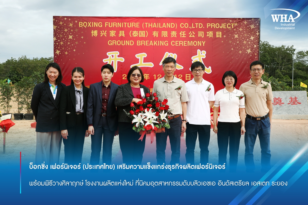บ็อกซิ่ง เฟอร์นิเจอร์ (ประเทศไทย) เสริมความแข็งแกร่งธุรกิจผลิตเฟอร์นิเจอร์ พร้อมพิธีวางศิลาฤกษ์ โรงงานผลิตแห่งใหม่ ที่นิคมอุตสาหกรรมดับบลิวเอชเอ อินดัสเตรียล เอสเตท ระยอง