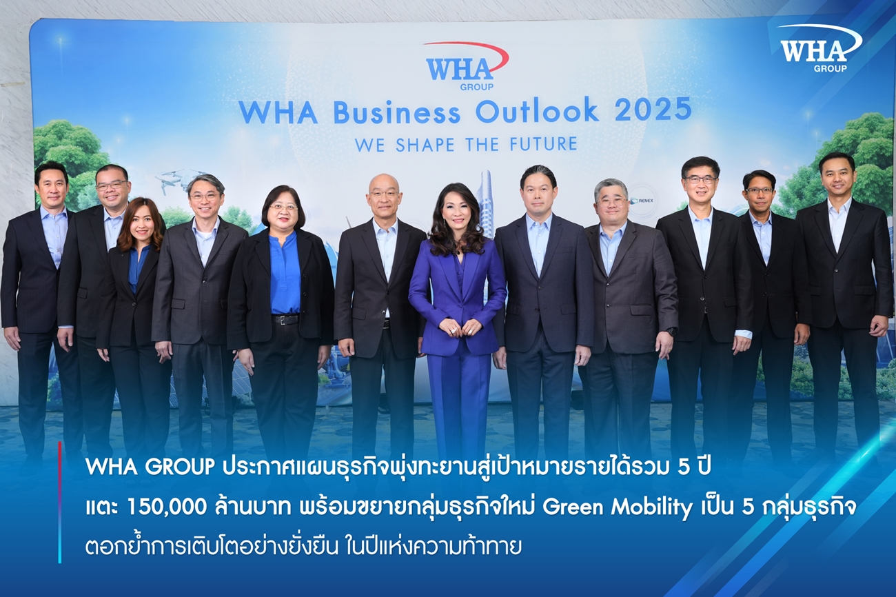 ดับบลิวเอชเอ กรุ๊ป ประกาศแผนธุรกิจ พุ่งทะยานสู่เป้าหมายรายได้รวม 5 ปี แตะ 150,000 ล้านบาท พร้อมขยายกลุ่มธุรกิจใหม่ Green Mobility เป็น 5 กลุ่มธุรกิจ ตอกย้ำการเติบโตอย่างยั่งยืน ในปีแห่งความท้าทาย