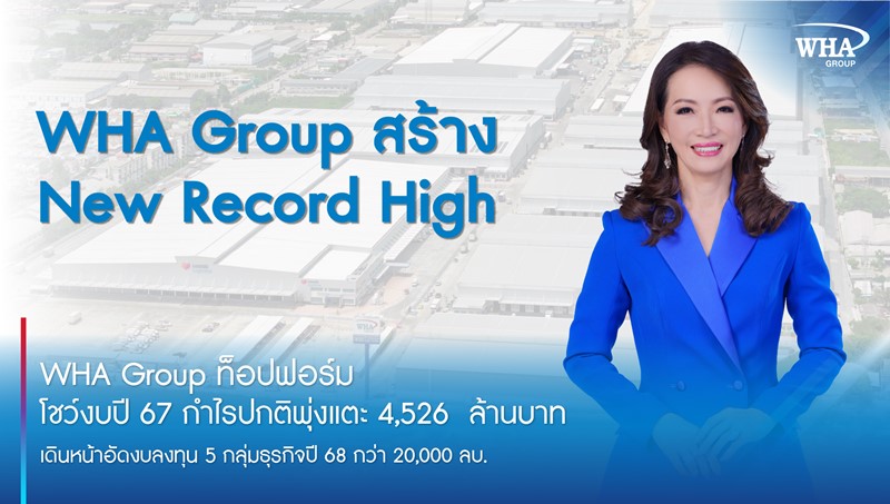 WHA Group ท็อปฟอร์ม โชว์งบปี 67 กำไรปกติพุ่งแตะ 4,526 ล้านบาท สร้าง New Record High เดินหน้าอัดงบลงทุน 5 กลุ่มธุรกิจปี 68 กว่า 20,000 ลบ.