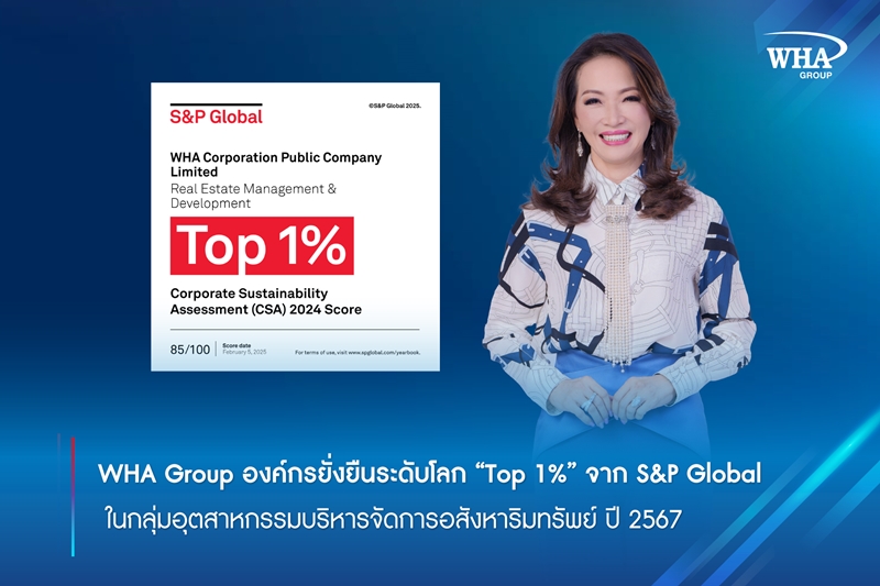 WHA Group องค์กรยั่งยืนระดับโลก "Top 1%" จาก S&P Global ในกลุ่มอุตสาหกรรมบริหารจัดการอสังหาริมทรัพย์ ปี 2567