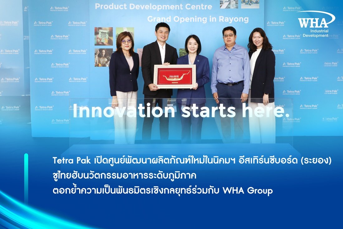 Tetra Pak เปิดศูนย์พัฒนาผลิตภัณฑ์ใหม่ในนิคมฯ อีสเทิร์นซีบอร์ด (ระยอง) ชูไทยฮับนวัตกรรมอาหารระดับภูมิภาค ตอกย้ำความเป็นพันธมิตรเชิงกลยุทธ์ร่วมกับ WHA Group