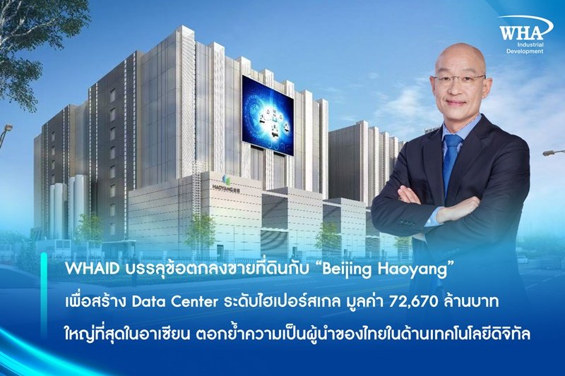 WHAID บรรลุข้อตกลงขายที่ดินกับ “Beijing Haoyang” เพื่อสร้าง Data Center ระดับไฮเปอร์สเกล มูลค่า 72,670 ล้านบาท ใหญ่ที่สุดในอาเซียน ตอกย้ำความเป็นผู้นำของไทยในด้านเทคโนโลยีดิจิทัล
