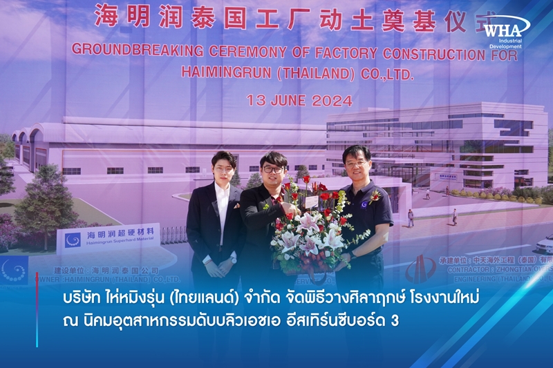 บริษัท ไห่หมิงรุ่น (ไทยแลนด์) จำกัด จัดพิธีวางศิลาฤกษ์ โรงงานใหม่ ณ นิคมอุตสาหกรรมดับบลิวเอชเอ อีสเทิร์นซีบอร์ด 3