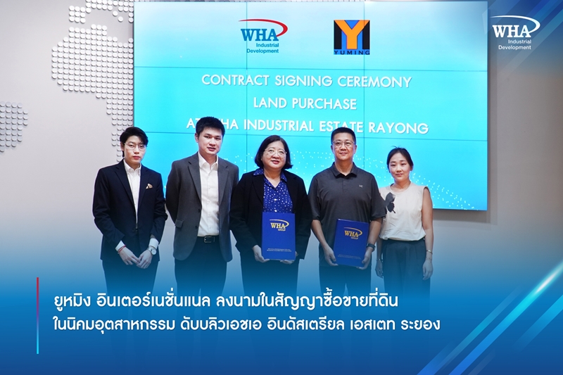 ยูหมิง อินเตอร์เนชั่นแนล ลงนามในสัญญาซื้อขายที่ดิน ในนิคมอุตสาหกรรม ดับบลิวเอชเอ อินดัสเตรียล เอสเตท ระยอง