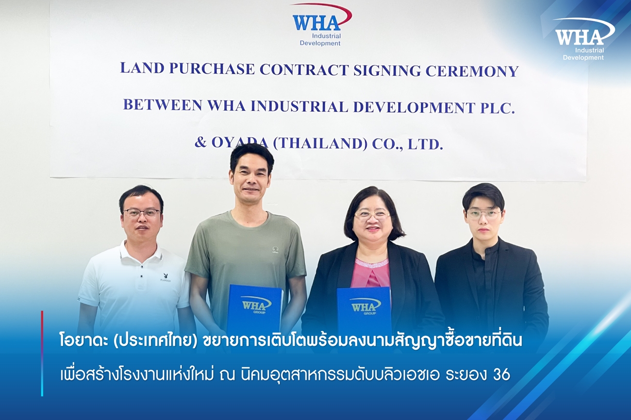 โอยาดะ (ประเทศไทย) ขยายการเติบโตพร้อมลงนามสัญญาซื้อขายที่ดิน เพื่อสร้างโรงงานแห่งใหม่ ณ นิคมอุตสาหกรรมดับบลิวเอชเอ ระยอง 36