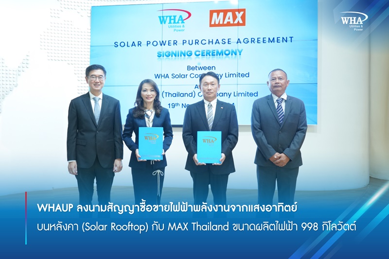 WHAUP ลงนามสัญญาซื้อขายไฟฟ้าพลังงานจากแสงอาทิตย์บนหลังคา (Solar Rooftop) กับ MAX Thailand ขนาดผลิตไฟฟ้า 998 กิโลวัตต์