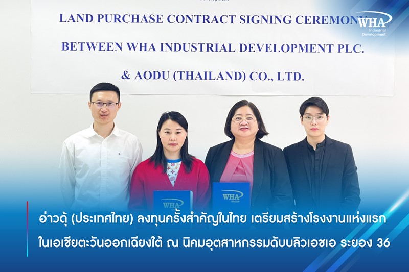อ่าวดุ้ (ประเทศไทย) ลงทุนครั้งสำคัญในไทย เตรียมสร้างโรงงานแห่งแรก ในเอเชียตะวันออกเฉียงใต้ ณ นิคมอุตสาหกรรมดับบลิวเอชเอ ระยอง 36