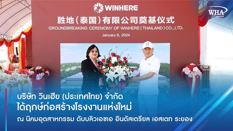 บริษัท วินเฮีย (ประเทศไทย) จำกัด ได้ฤกษ์ก่อสร้างโรงงานแห่งใหม่ ณ นิคมอุตสาหกรรม ดับบลิวเอชเอ อินดัสเตรียล เอสเตท ระยอง